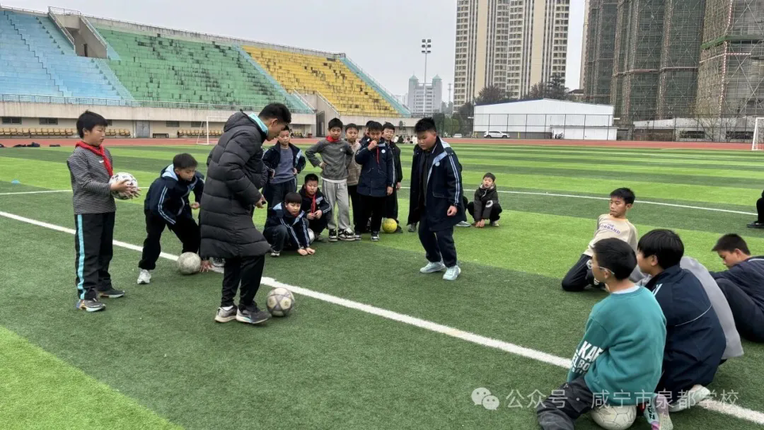 足球社团同学们在兰碧老师的带领下,与湖北科技学院体育学院的龙虎老师和秦会兵老师开启了一段难忘的足球启蒙之旅。通过各种传球的竞技游戏穿插专业的技术讲解,让学生们在玩中学在学中玩,不仅学习了传球的相关技术要点,还收获了快乐。让孩子们在游戏中理解了传球的意义、团队的力量。阳光下,汗水沿着孩子们红扑扑的脸颊滑落,但他们的眼睛却格外明亮——那是专注、兴奋和成就感的光芒。
