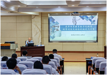 骆秉全教授从国家数字化战略与教育现代化要求切入,系统阐述了高校体育数字化转型的时代背景,并强调其发展的“紧迫性”。他指出:人工智能、大数据等技术正重塑体育教育生态,数字化已成为提升教学质量、优化管理模式、服务学生发展的必然选择。讲座围绕政策驱动与技术革命的双重推力背景;新时代人才培养与体育教育创新的迫切需求;国内高校体育数字化平台建设、智能设备应用及实践案例现状与应用;数据整合壁垒、师资数字素养不足、标准体系缺失等痛点;提出构建协同机制、强化技术培训、完善评价体系等突破路径邓五大核心维度展开深度剖析。